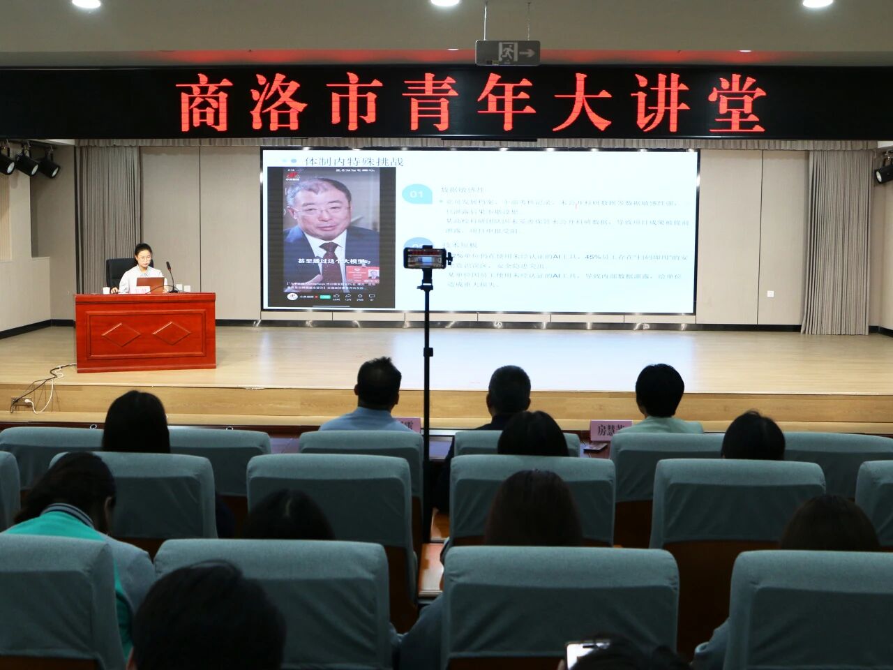9月19日,“AI时代的数据守护”商洛青年大讲堂暨商洛市第十二届国家网络安全宣传周青少年日主题讲座活动在市工人文化宫三楼多功能厅举行。本次活动由共青团商洛市委、商洛市委网信办、市总工会联合主办,吸引了市、区机关企事业单位及相关青年志愿者组织共150余青少年参与。